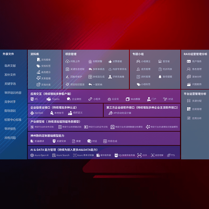 医疗器械产品上市前,,,,要熟悉严格与繁复评审标准,,,,整理分析监管机构指导文件中的海量信息。。企业急需一个智能化解决方案,,提升知识管理效率,,,,提高评审通过率,,,,以提升其市场竞争力。。。