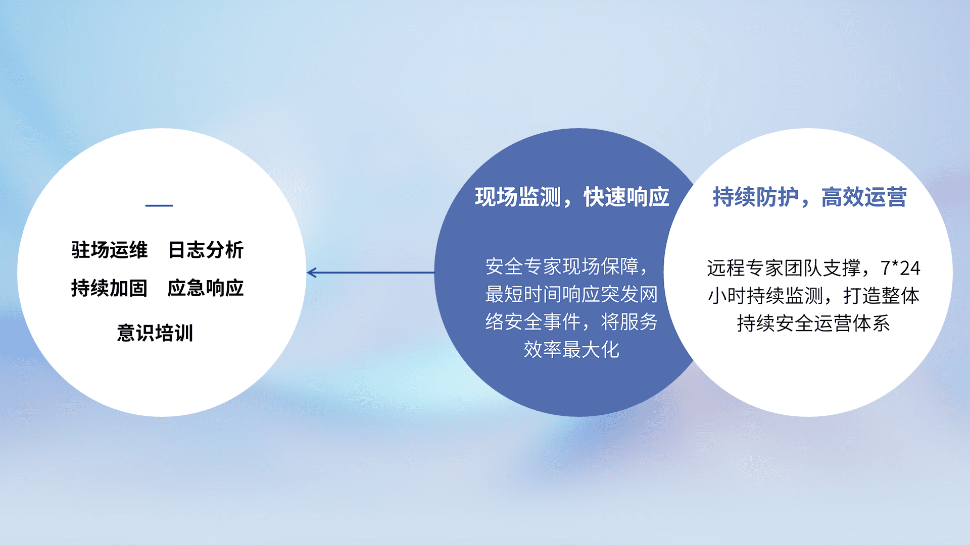 7X24小时持续监测安全事件,保持安全策略有效性,降低资产脆弱性风险,,,,精准拦截黑客攻击,,减少被黑客利用的机会,,,,第一时间遏制,,,,降低损失。。。。